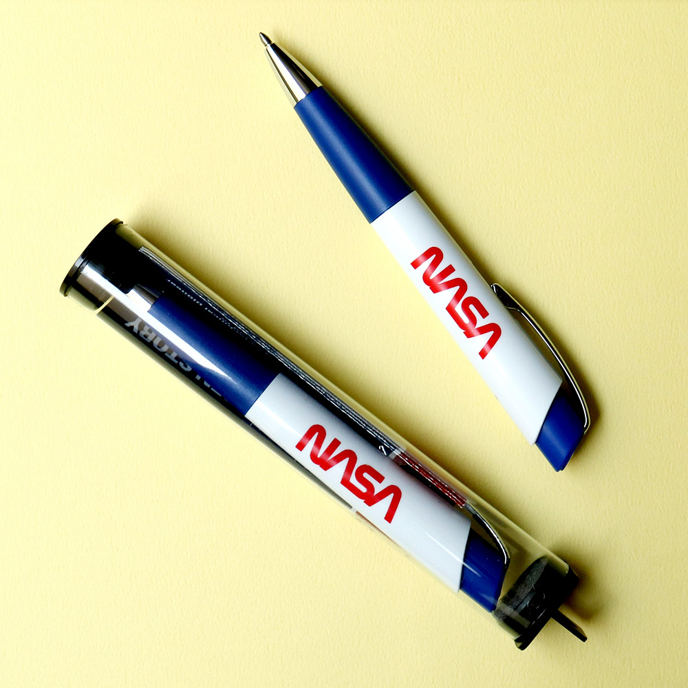 通常のボールペンは重力によりインクがペン先のボールへと落ちていきますが、スペースペンは内部に封入された窒素ガスの圧力によってインクがペン先ヘと移っていきます。そのため逆さにしてもインクが途切れず、無重力状態や水中、極端な低温・高温下(-34~+121℃)においてもスムーズに書く事ができます。